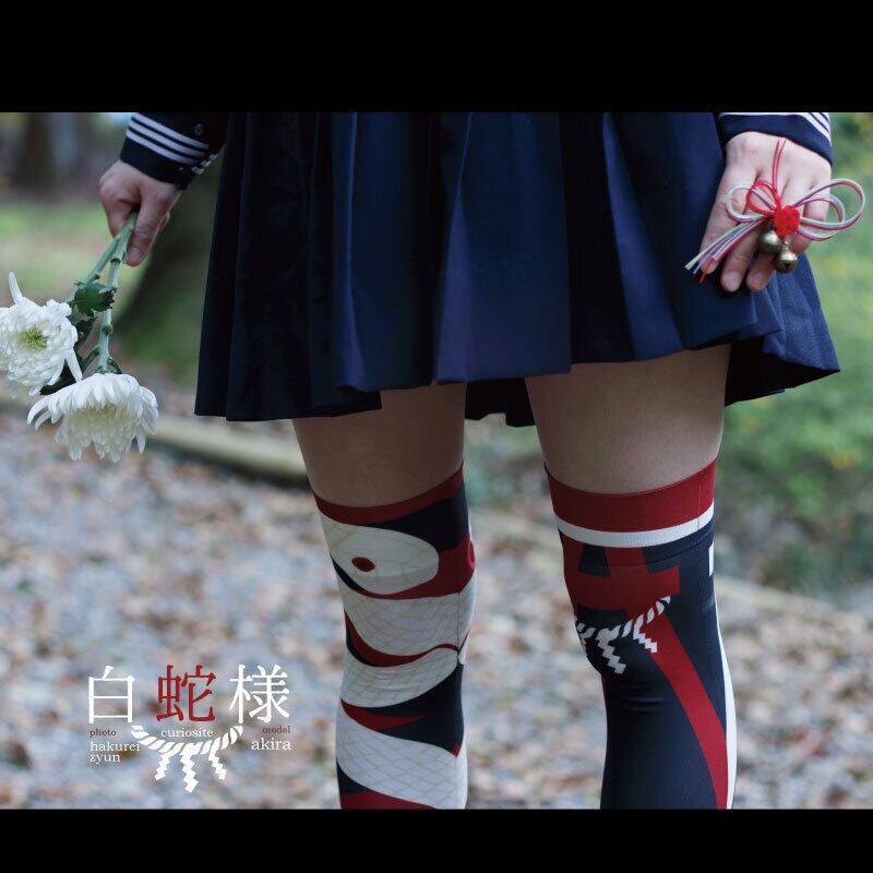 お狐様ニーハイの赤よりも落ち着いた赤色で、また違った印象を楽しめます。
