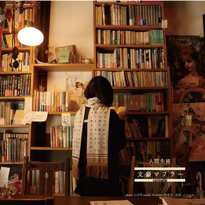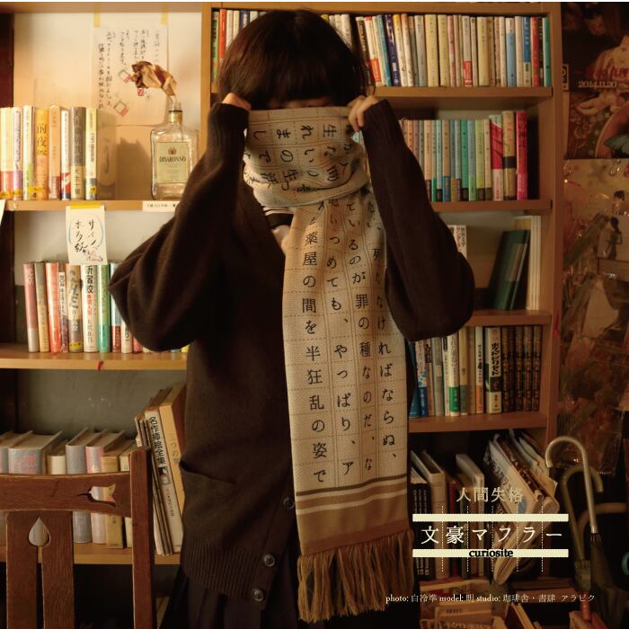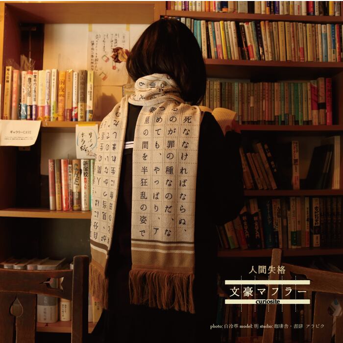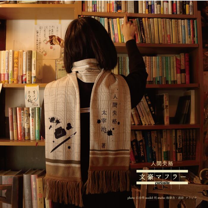 太宰治の『人間失格』をテーマにしたマフラーです。