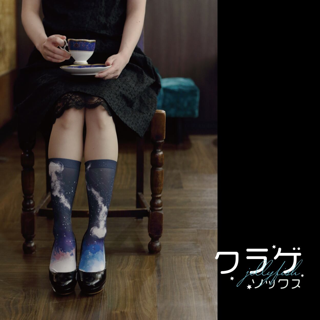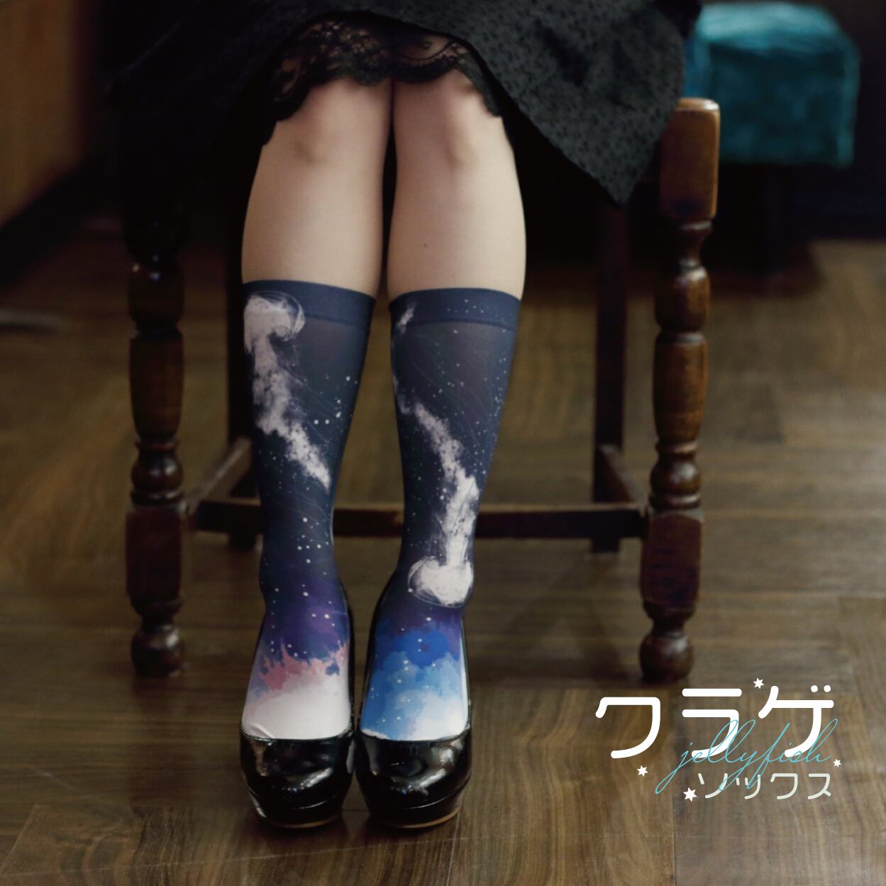 クラゲが優雅に泳ぐクルー丈ソックスです。