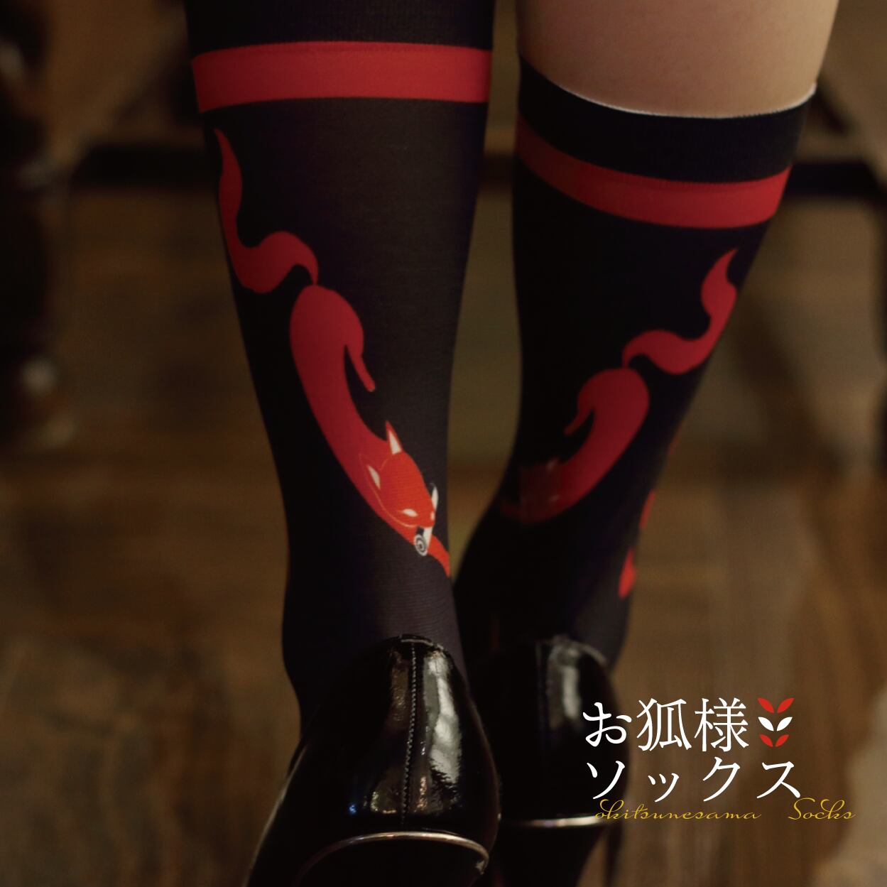 お狐様ニーハイをベースに、クルー丈ソックスに合わせたデザインのソックスです。