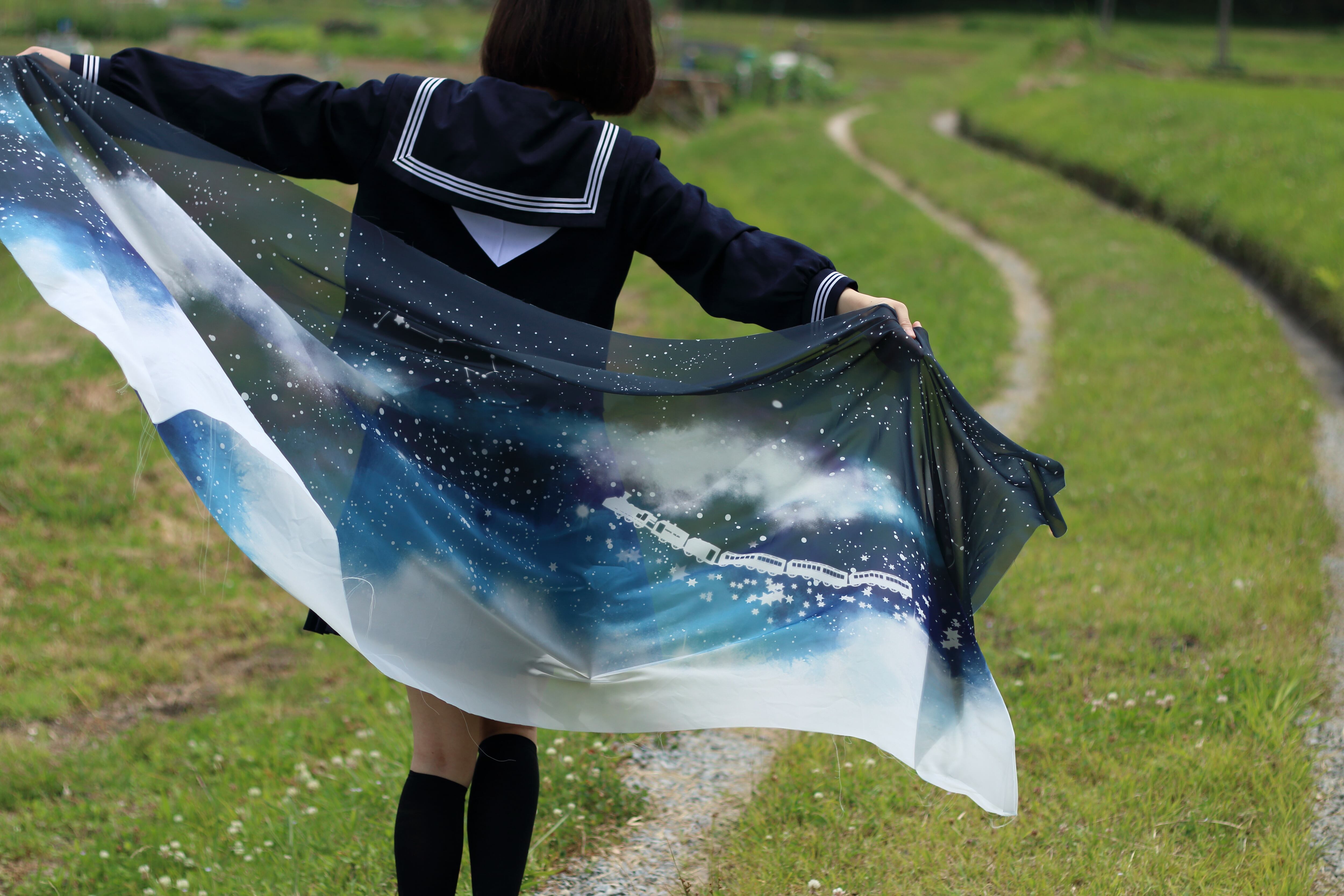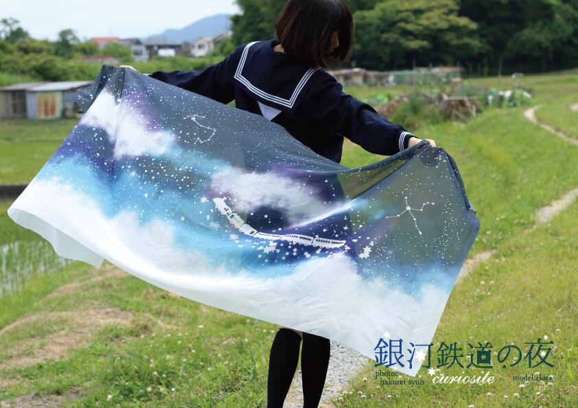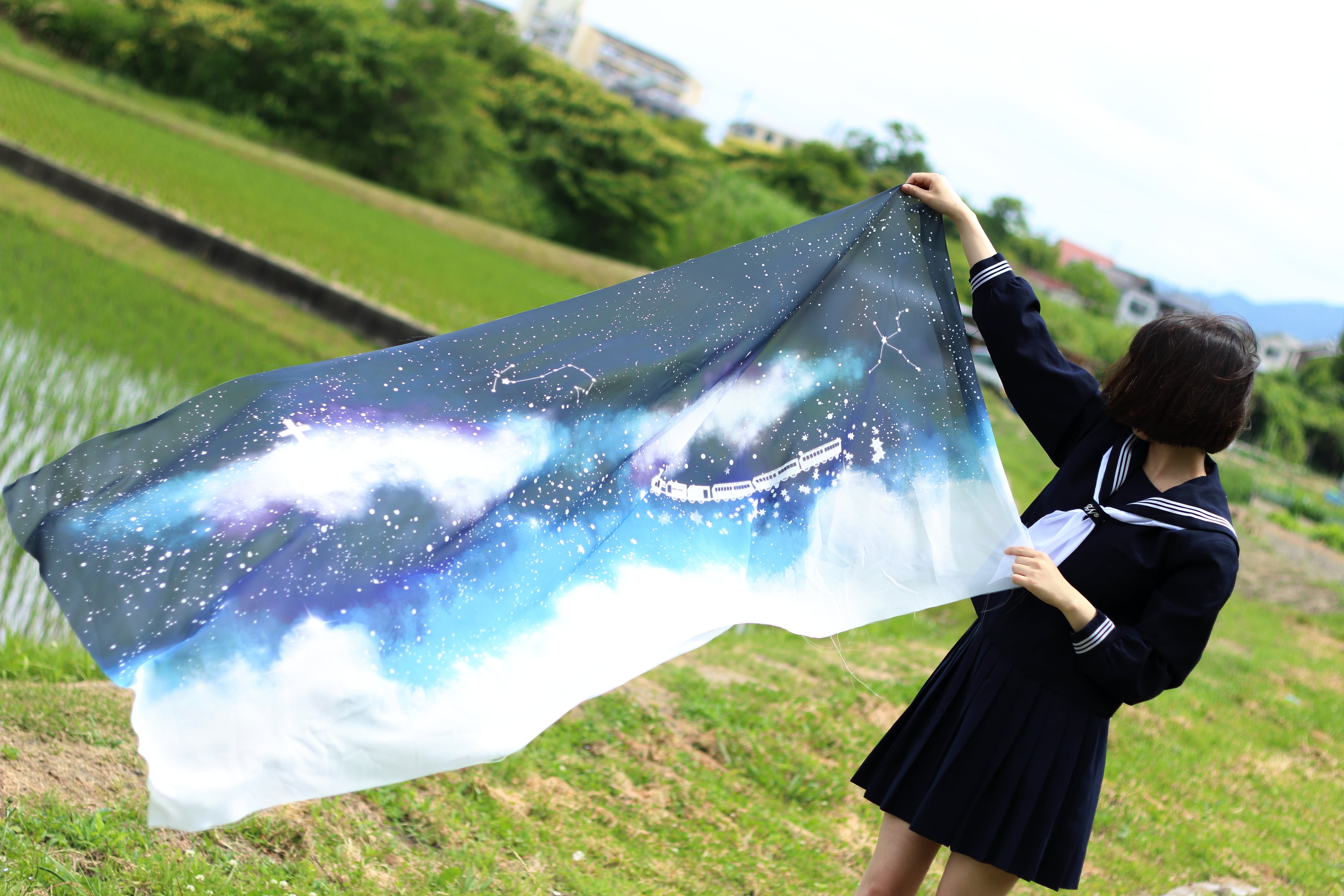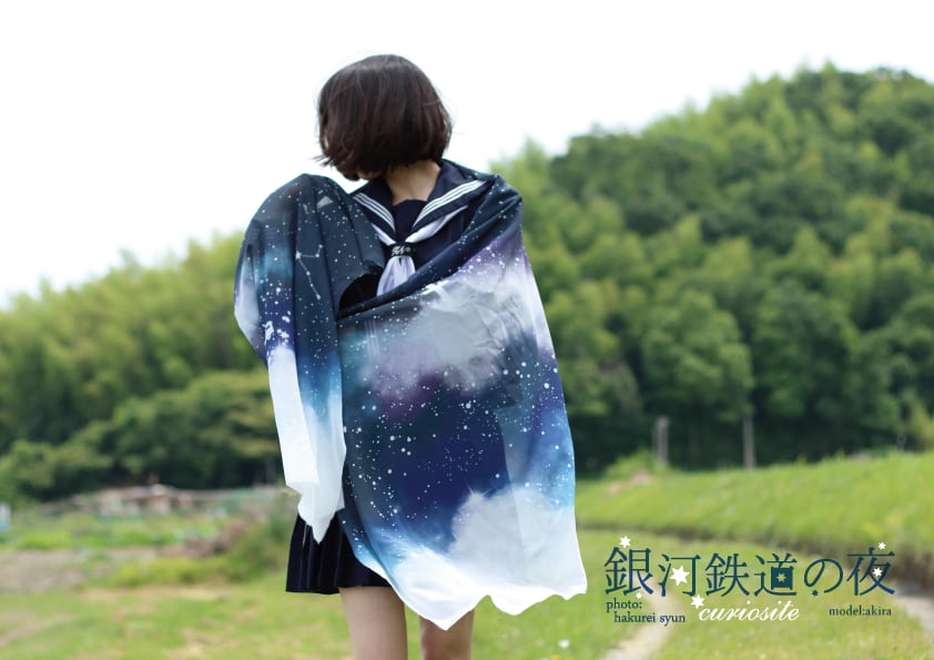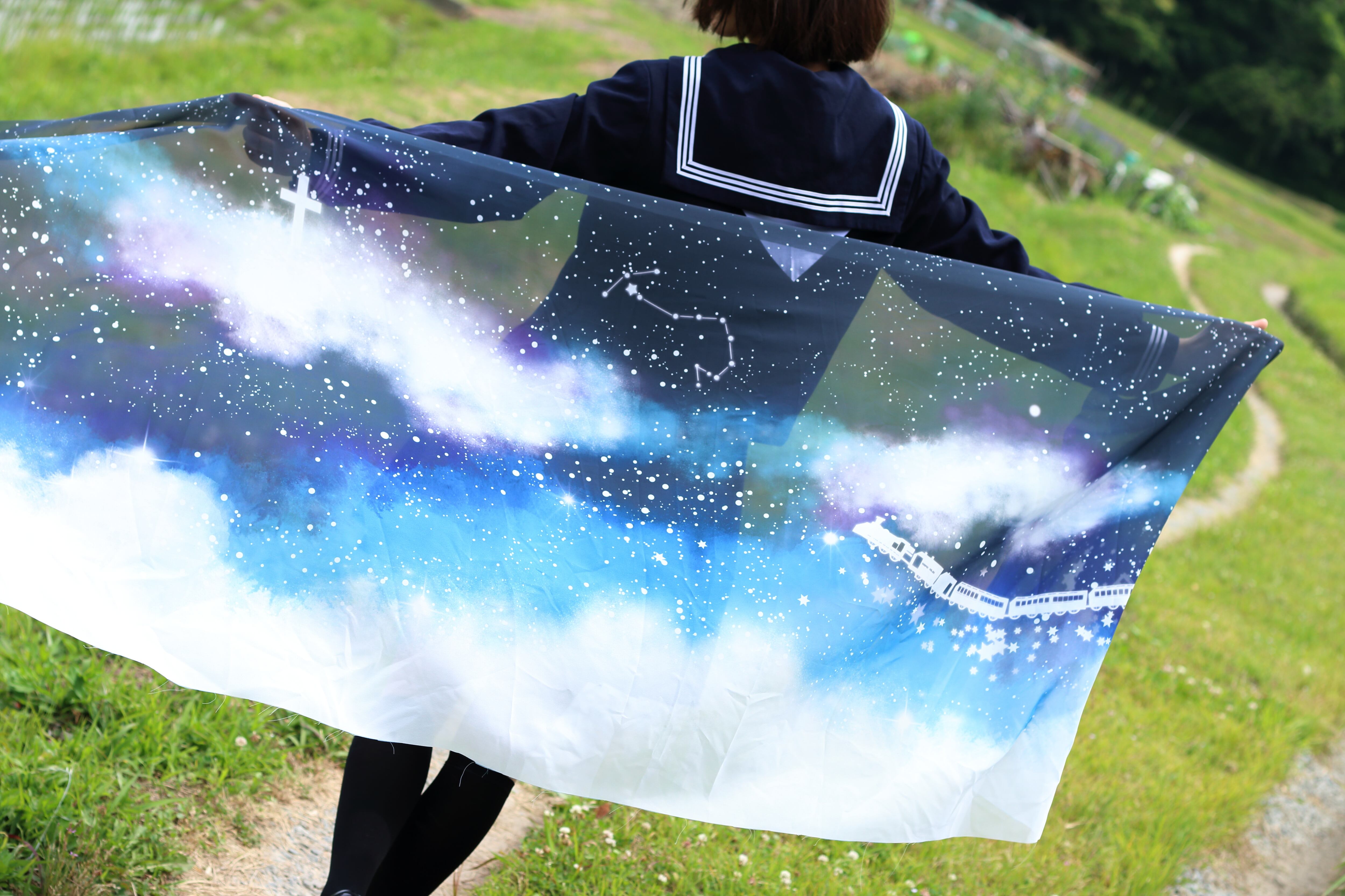 宮沢賢治の銀河鉄道の夜をテーマにした大判ストールです。