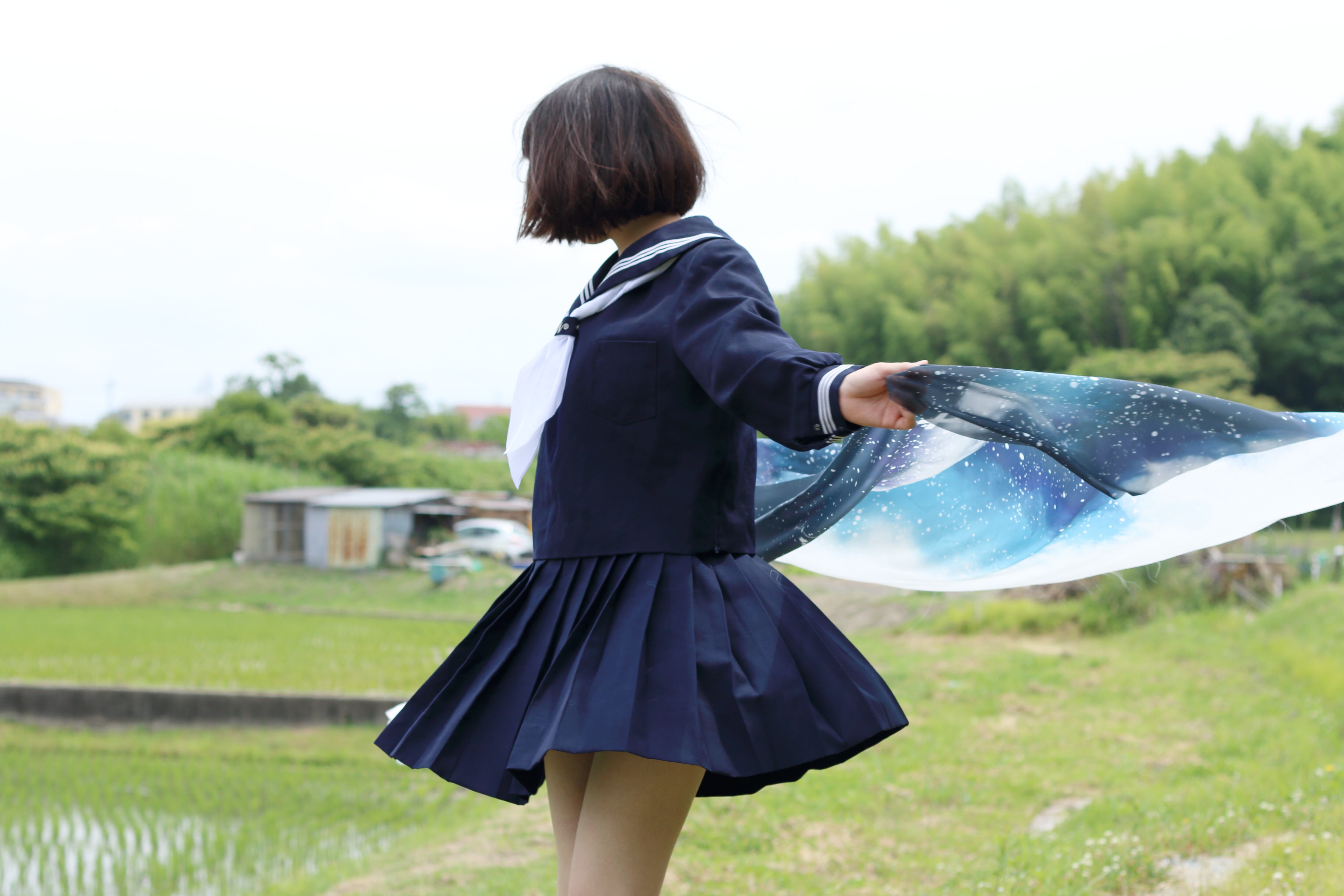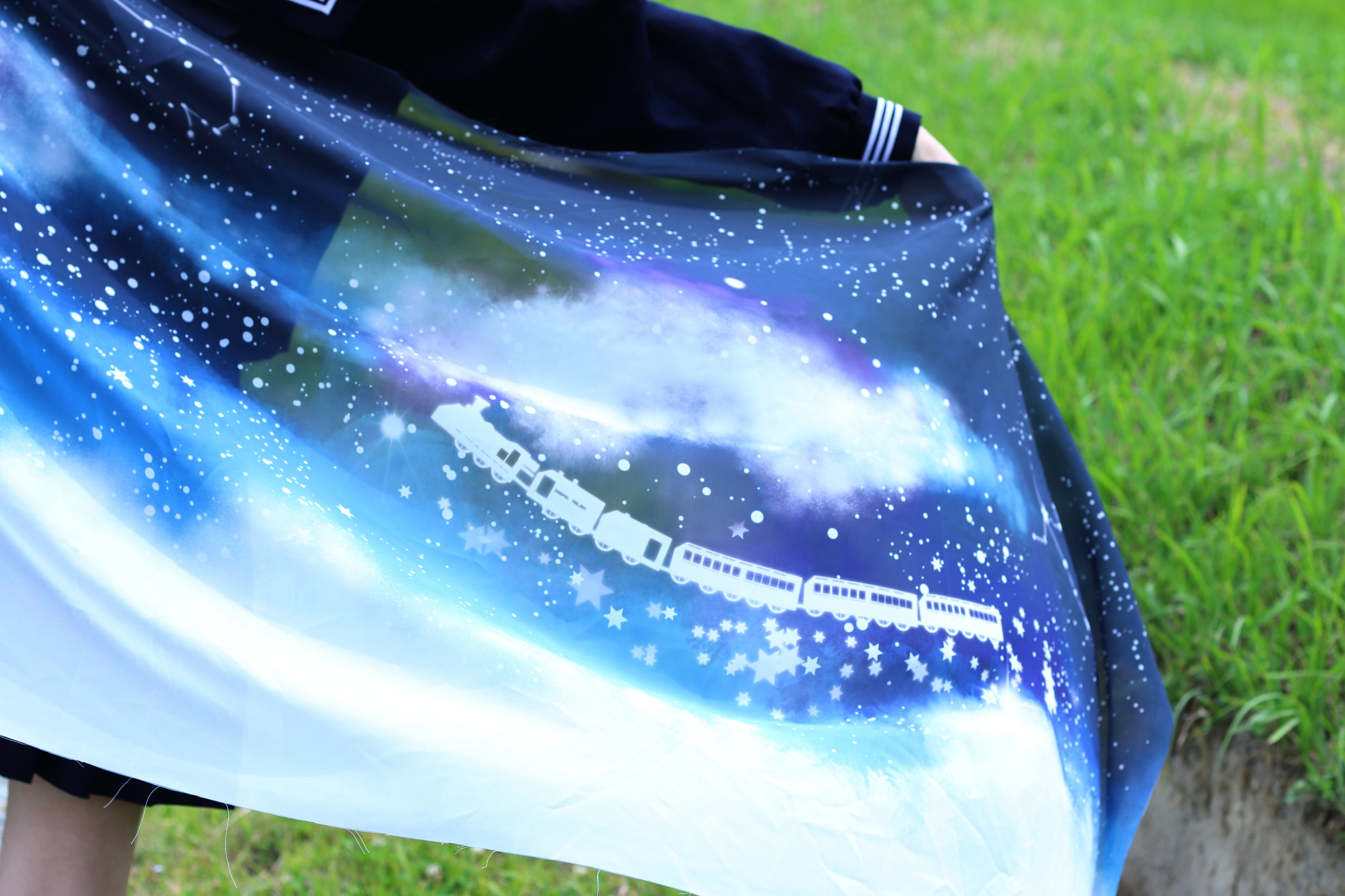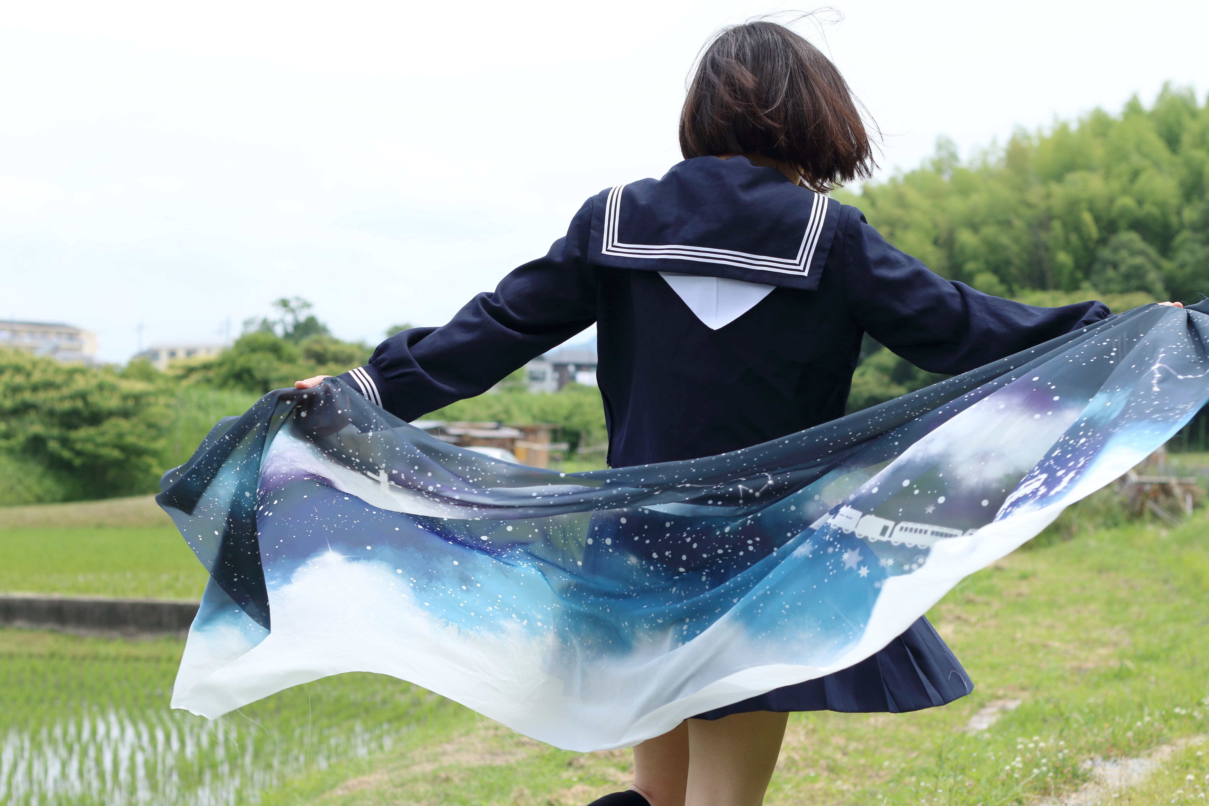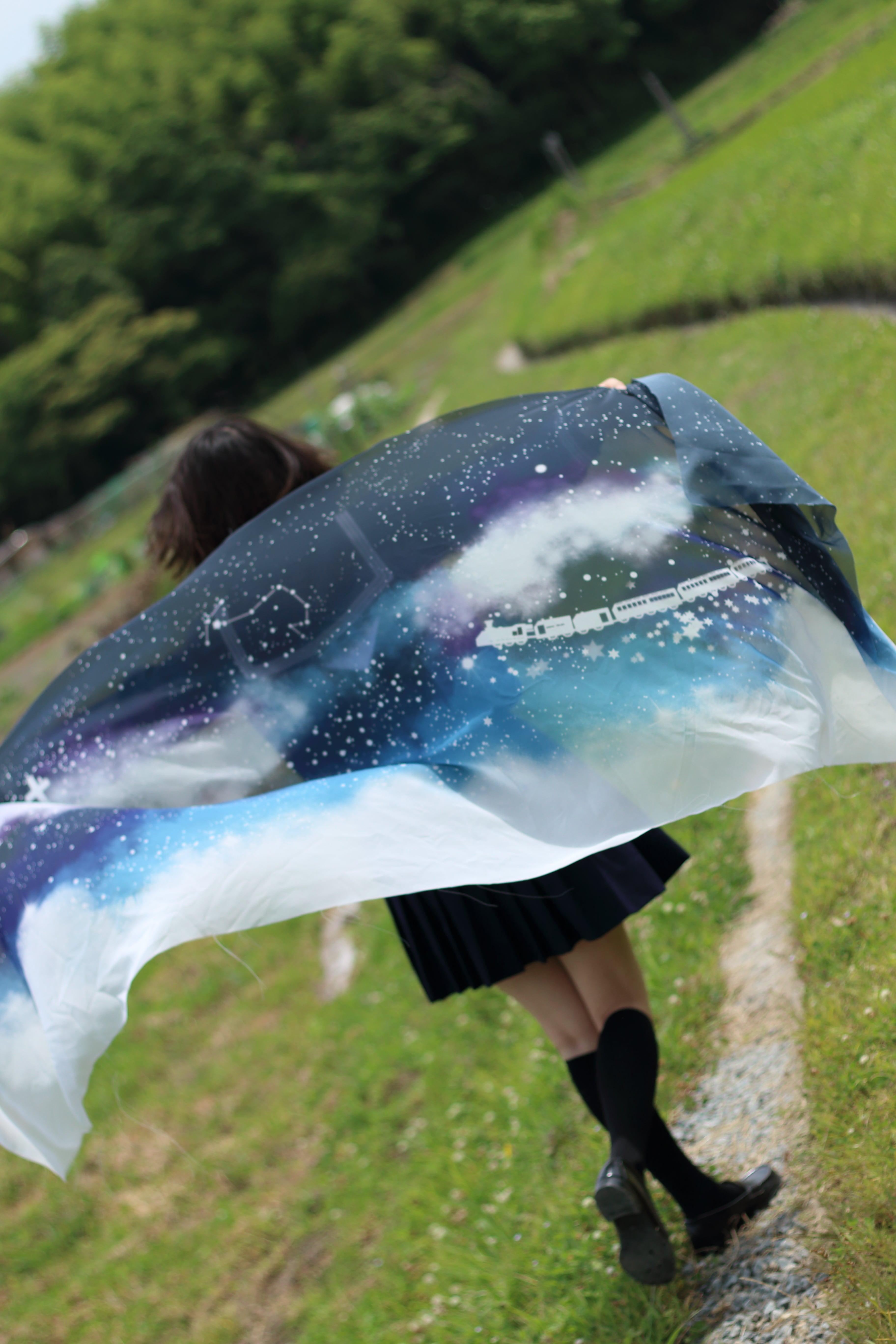宮沢賢治の銀河鉄道の夜をテーマにした大判ストールです。