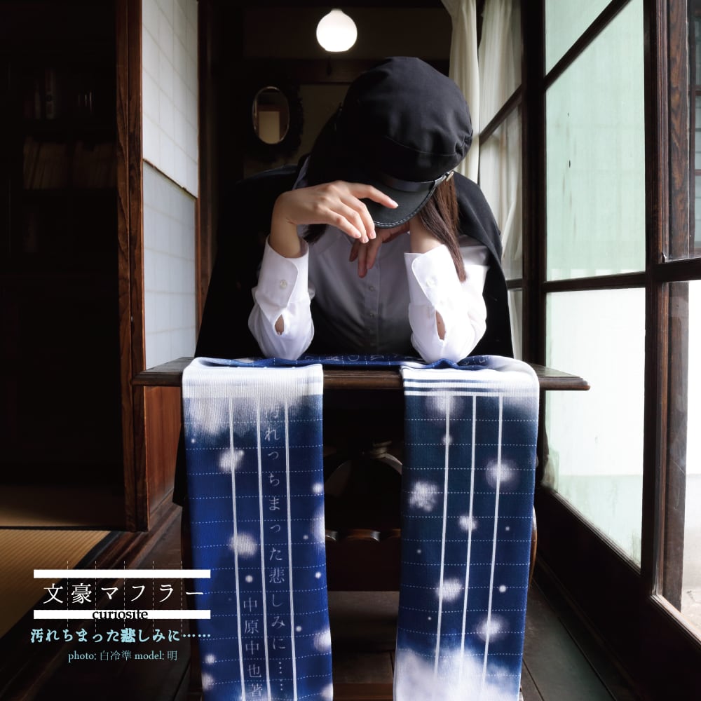 ”中原中也の【山羊の歌】『汚れちまった悲しみに……』をテーマにしたマフラーです。