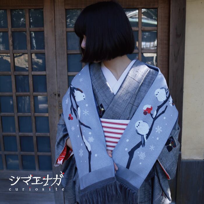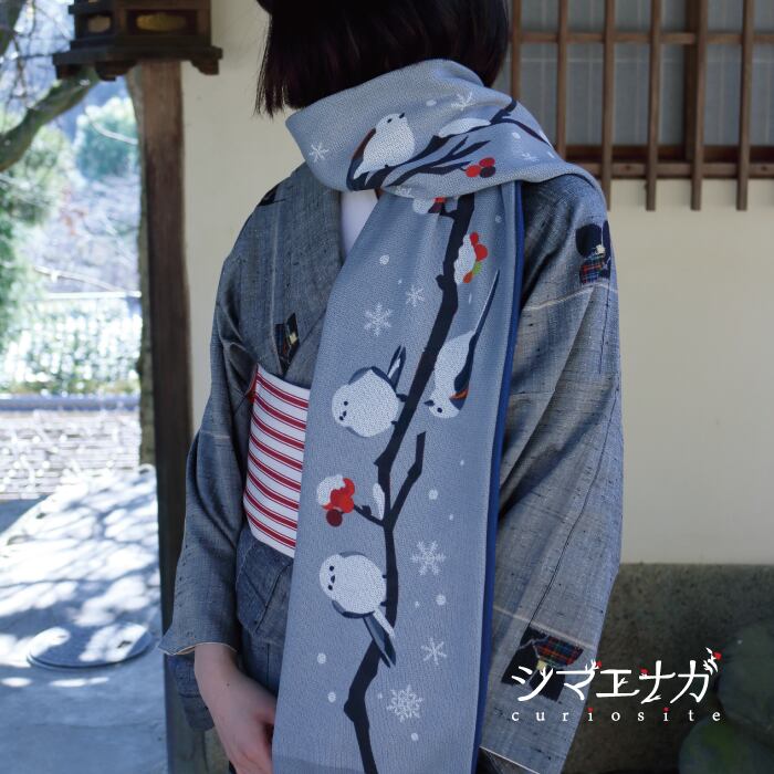 北海道に生息する、シマエナガをモチーフにしたマフラーです。