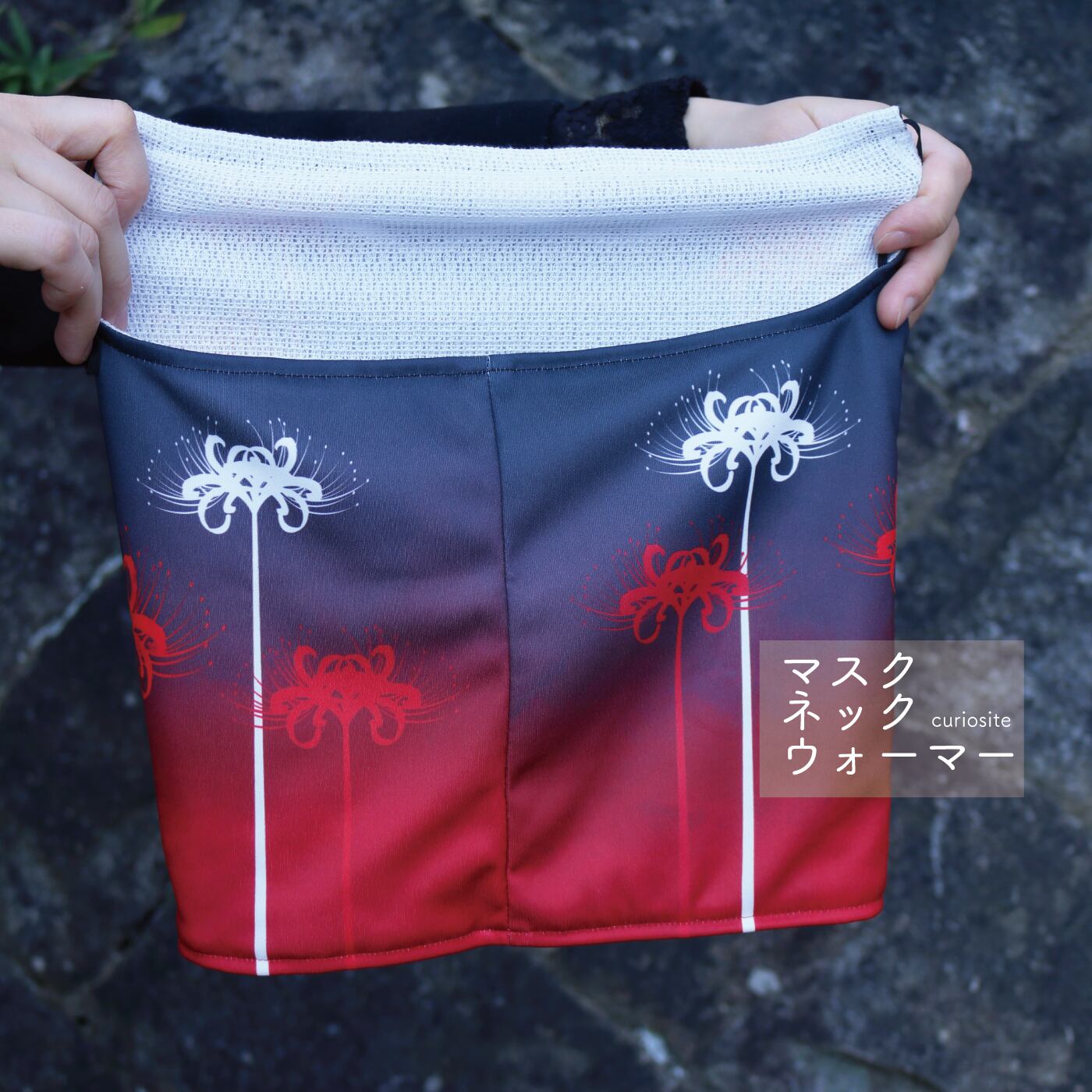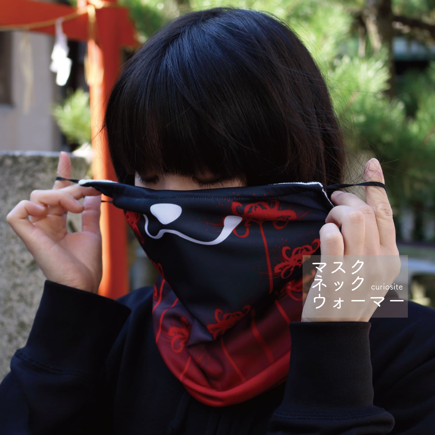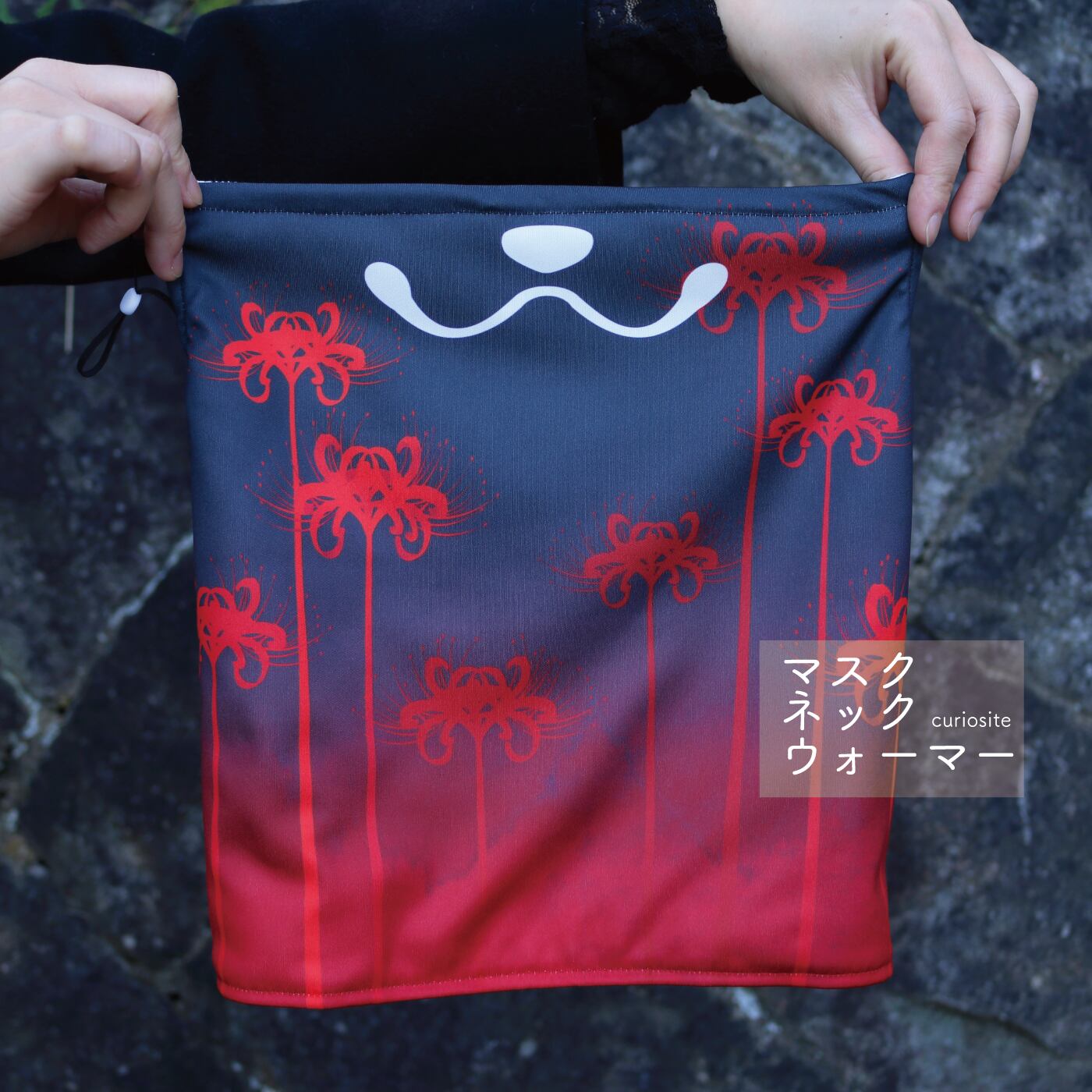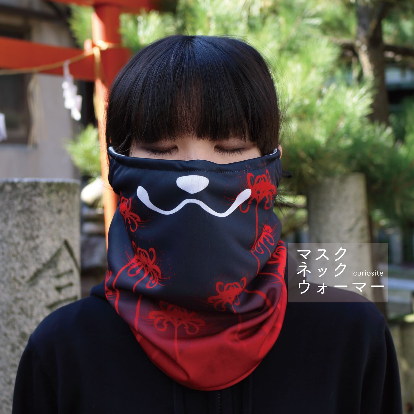 狐面と彼岸花の組み合わせのデザインのマスクネックウォーマーです