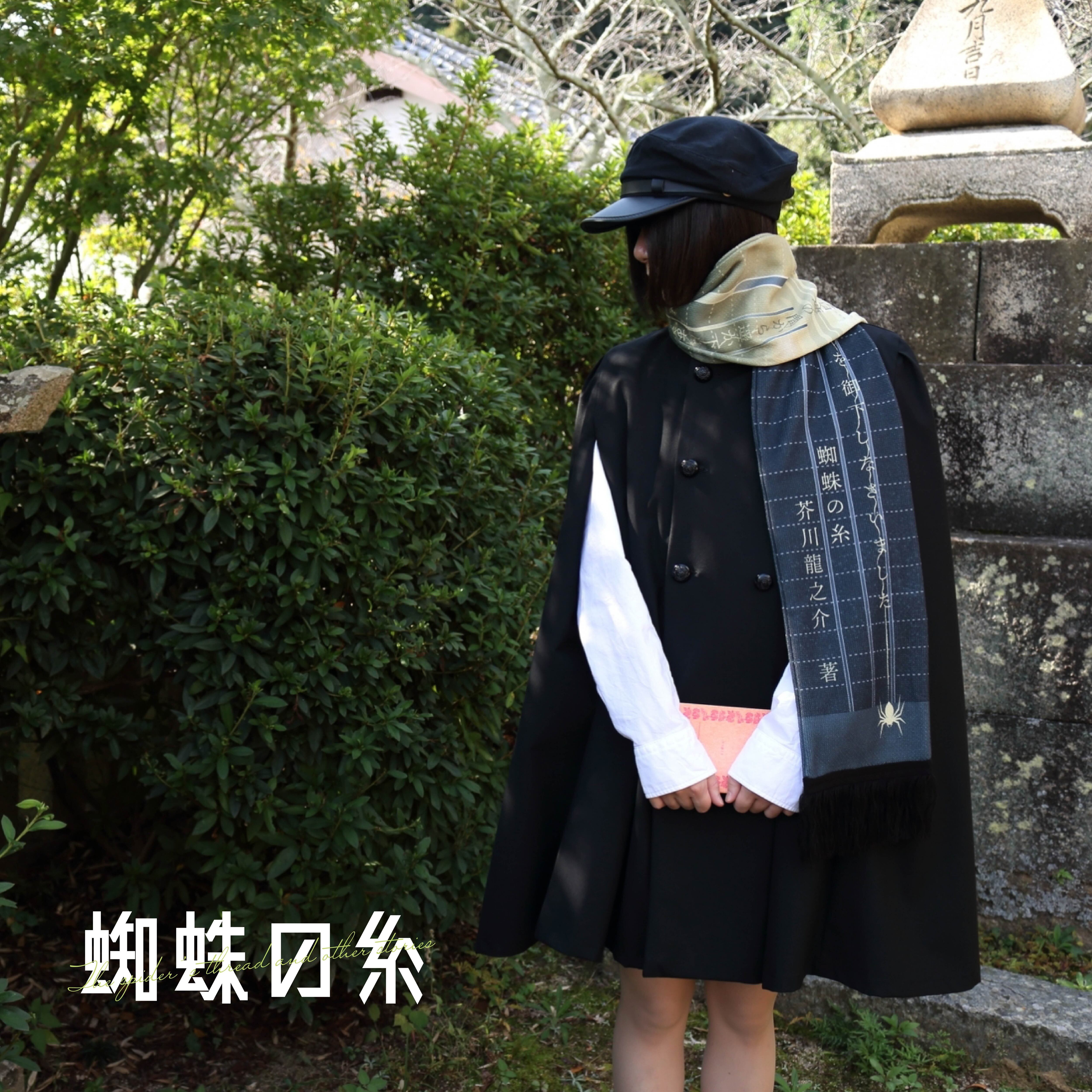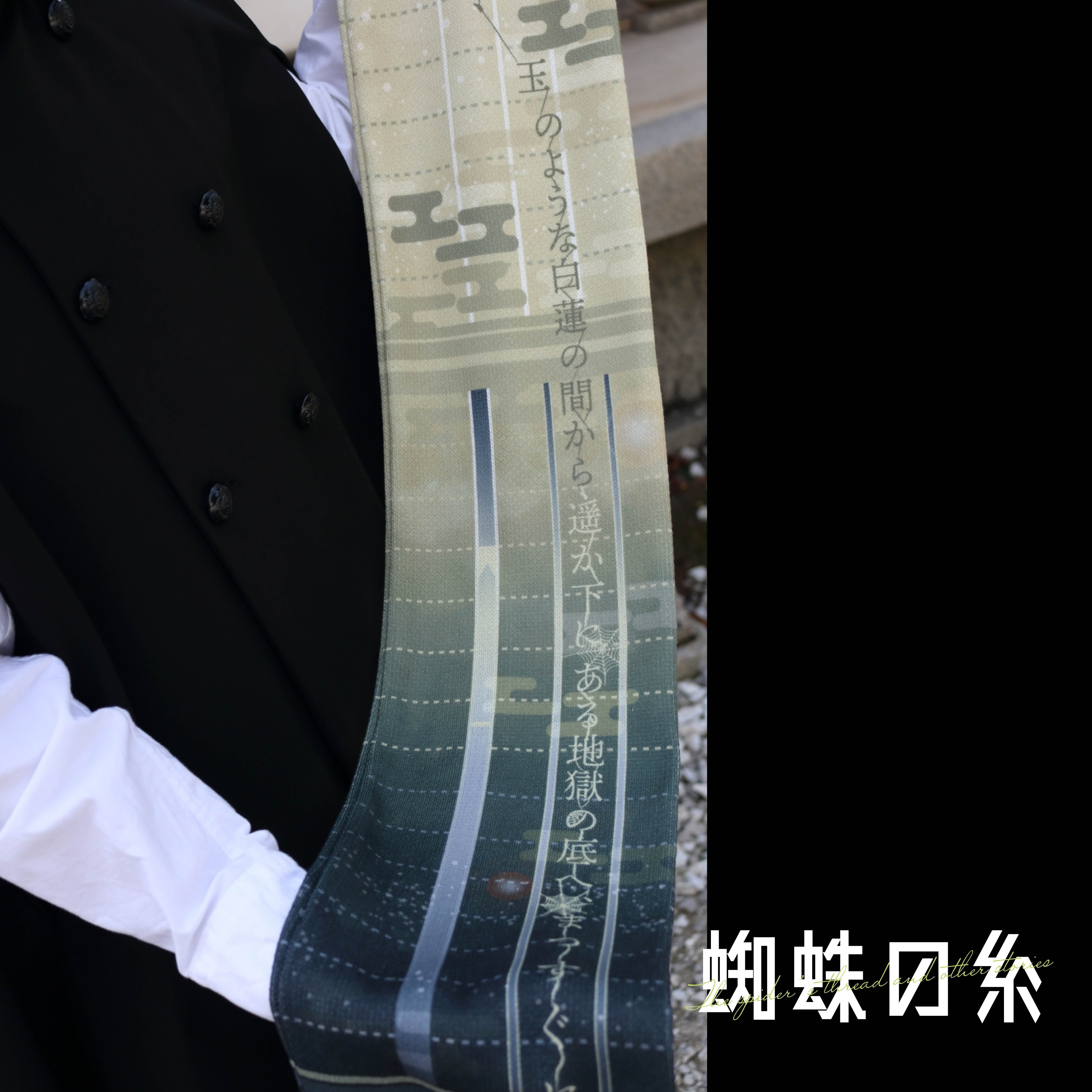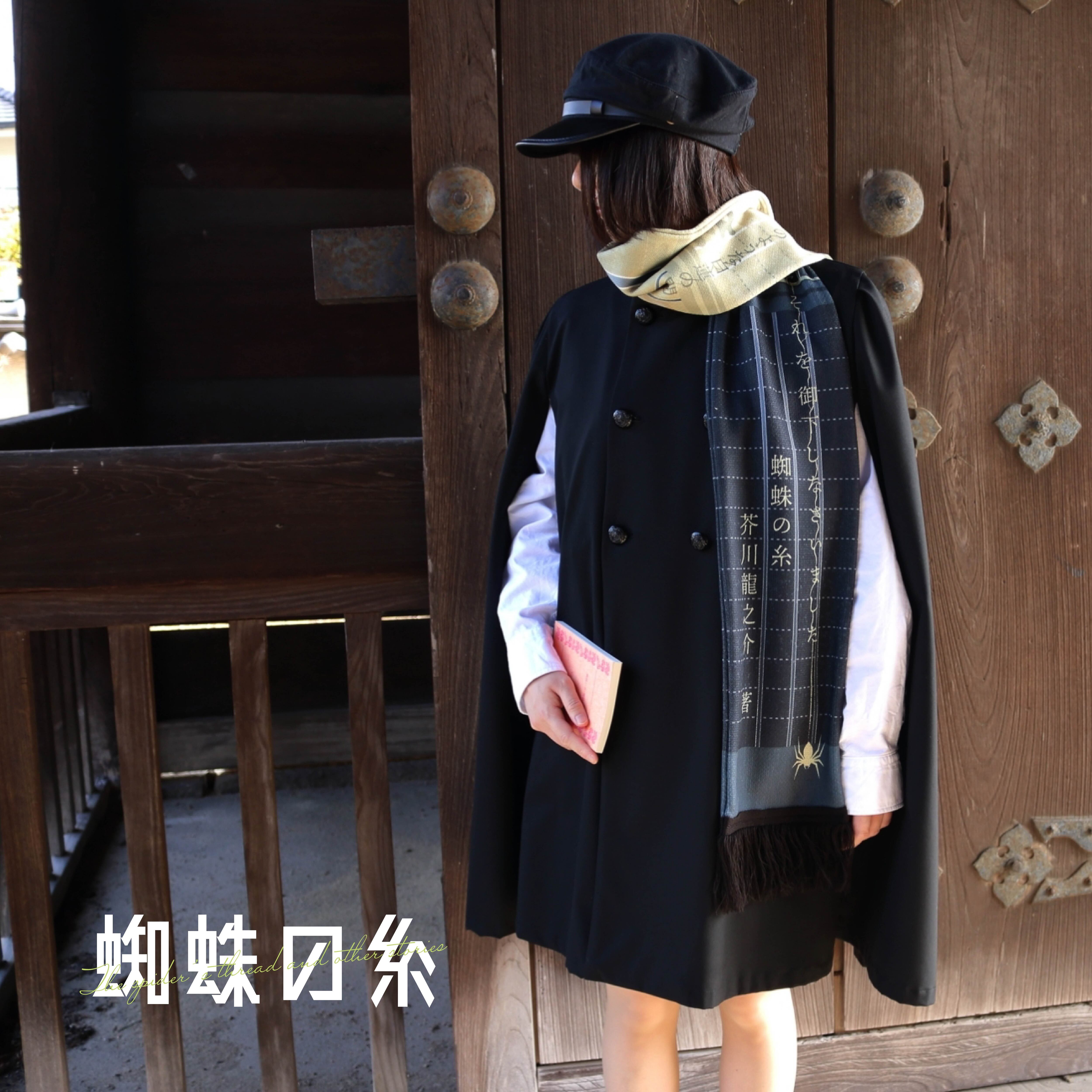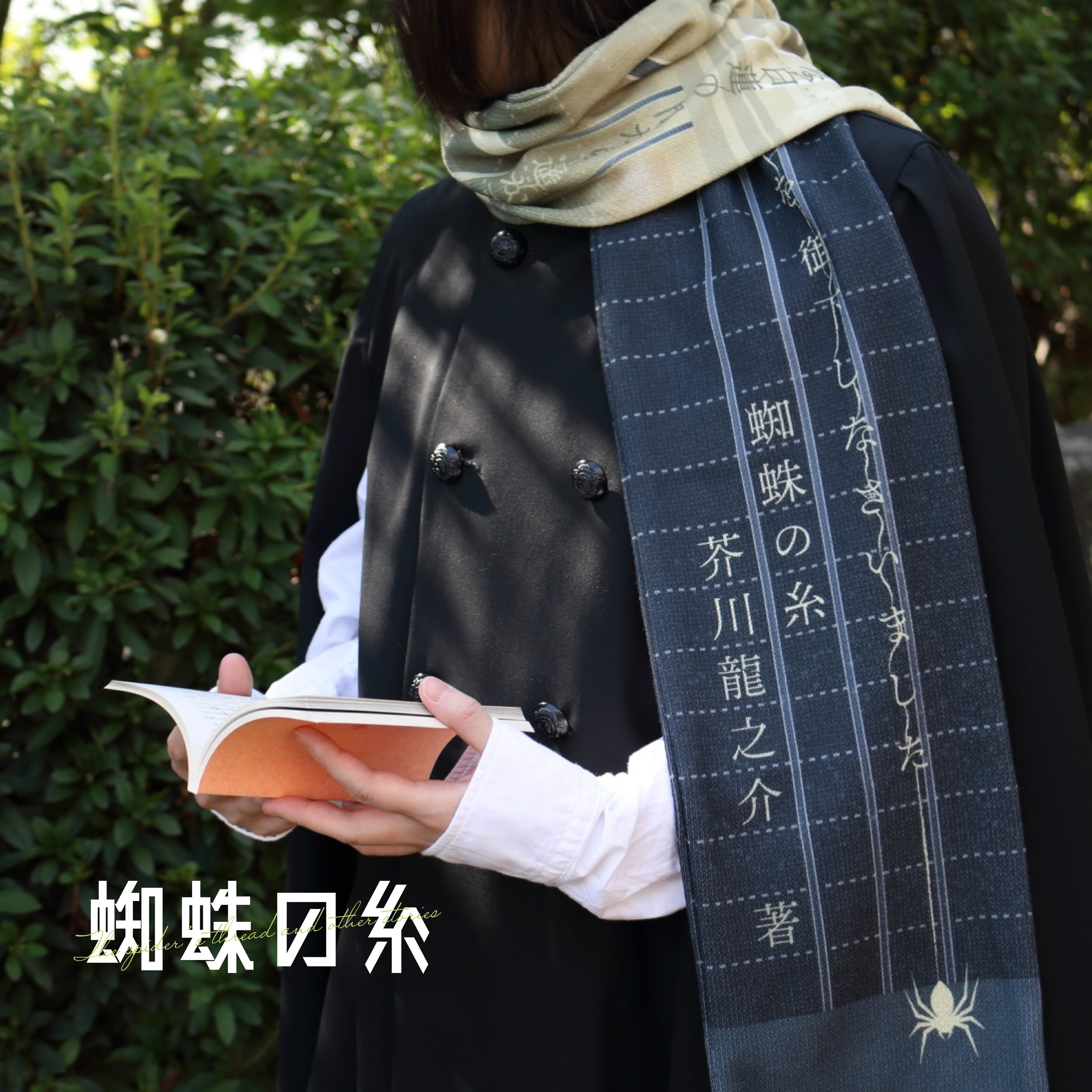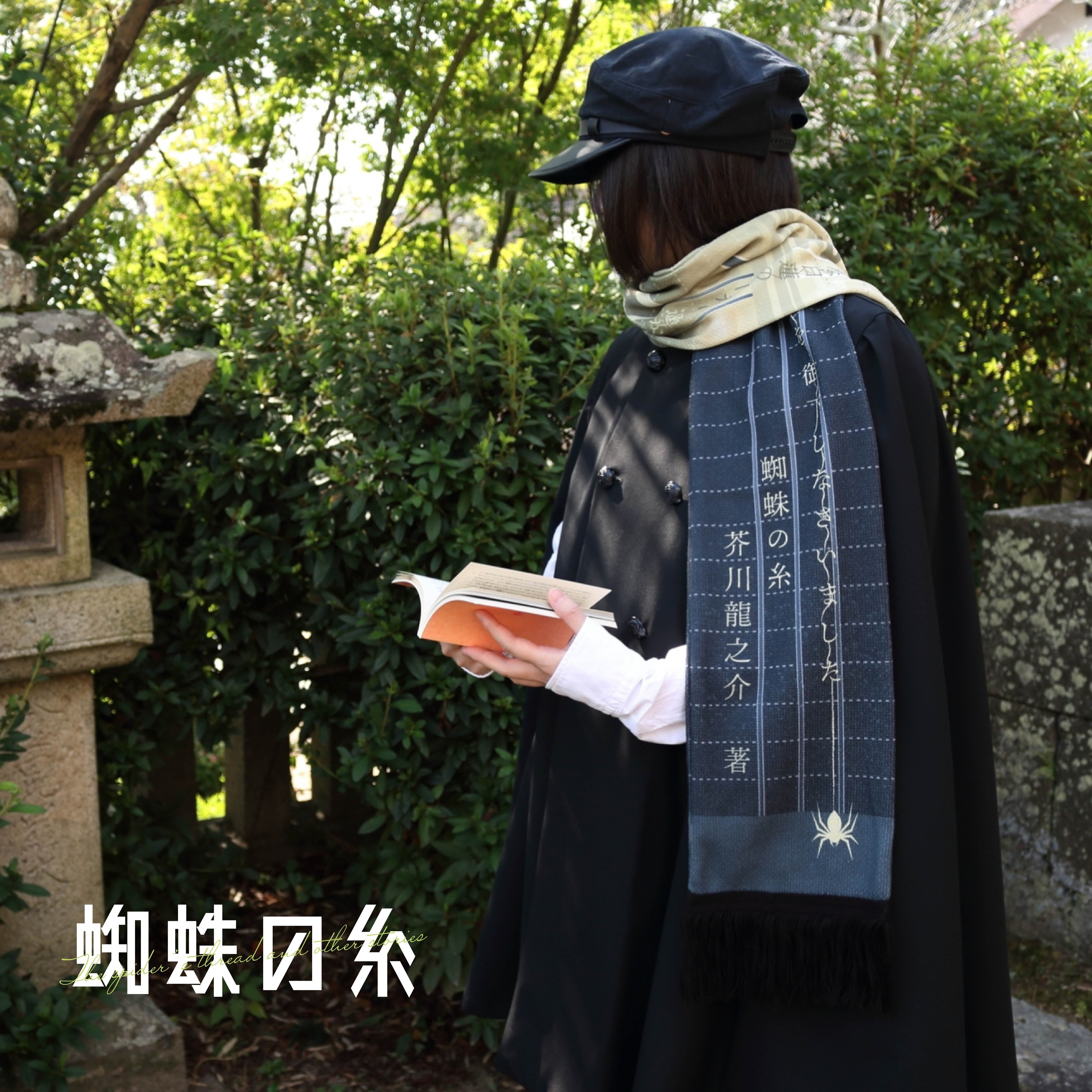 芥川龍之介の『蜘蛛の糸』をテーマにしたマフラーです。