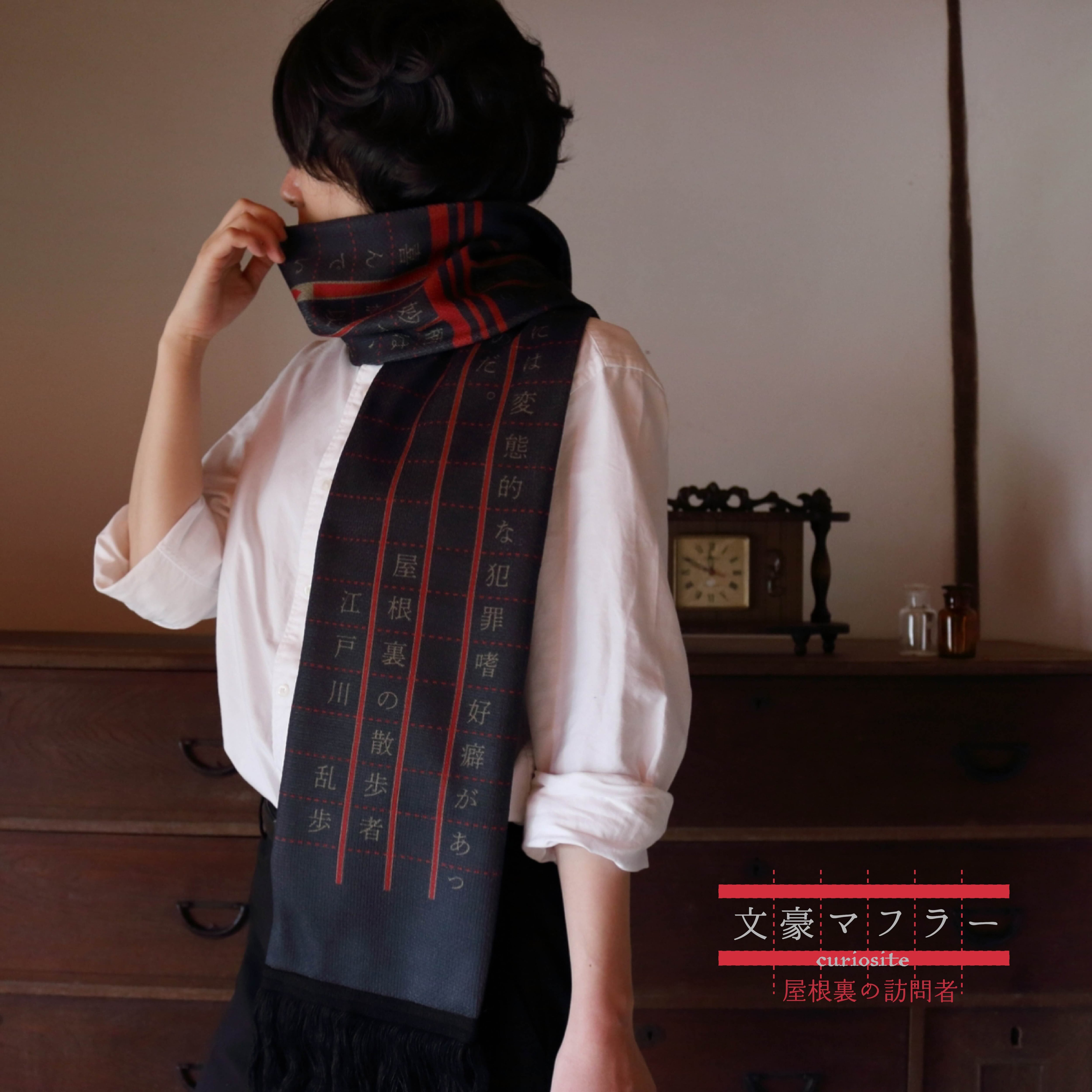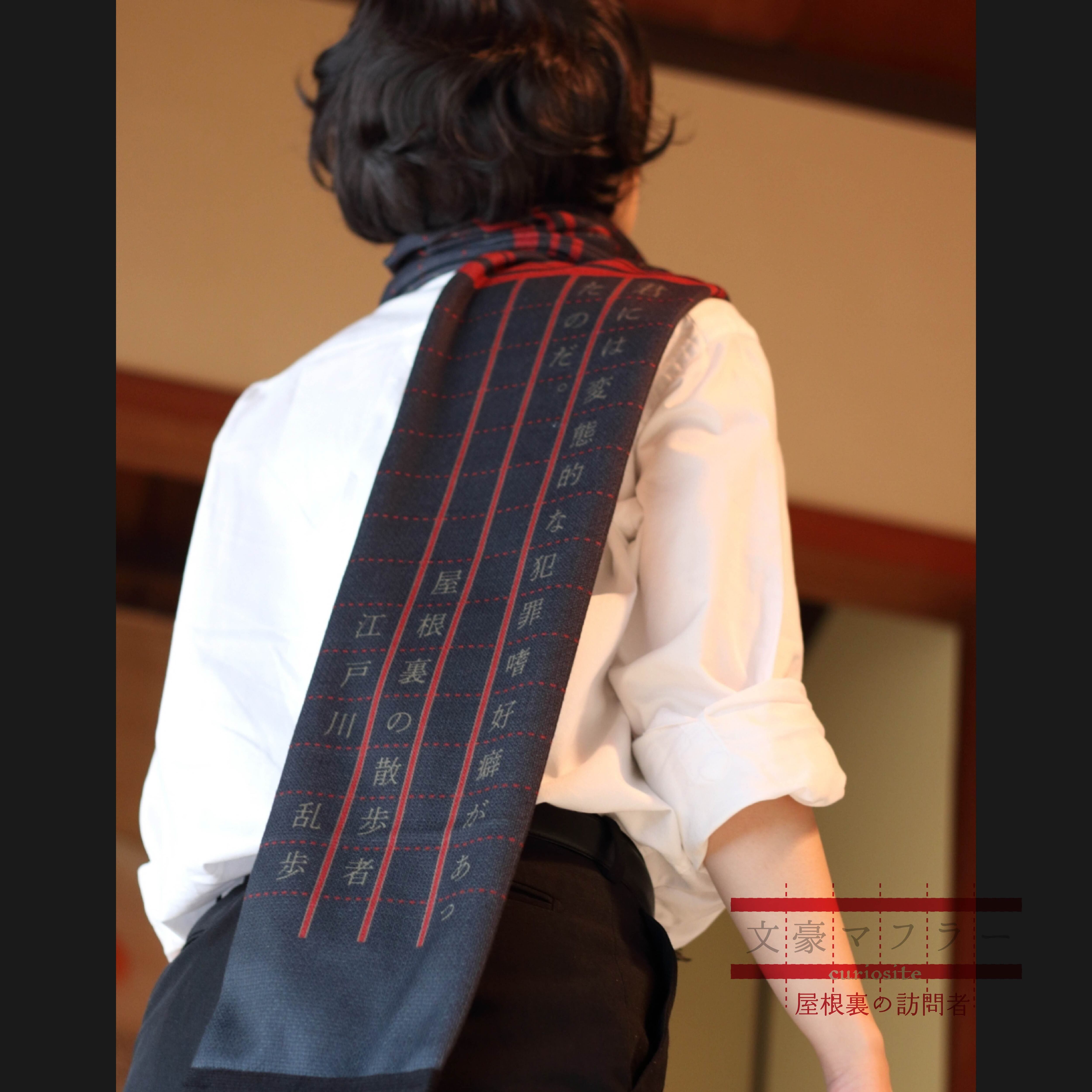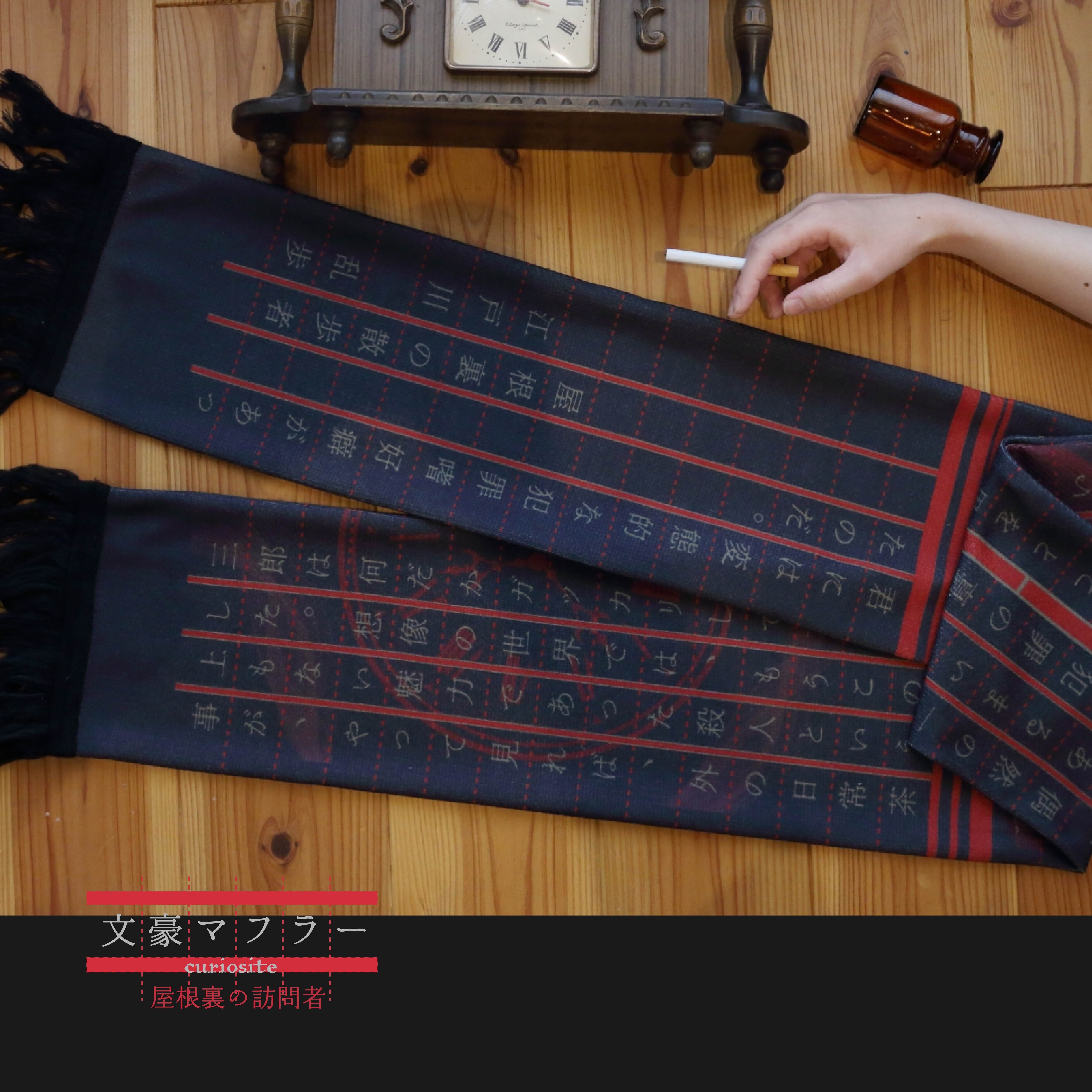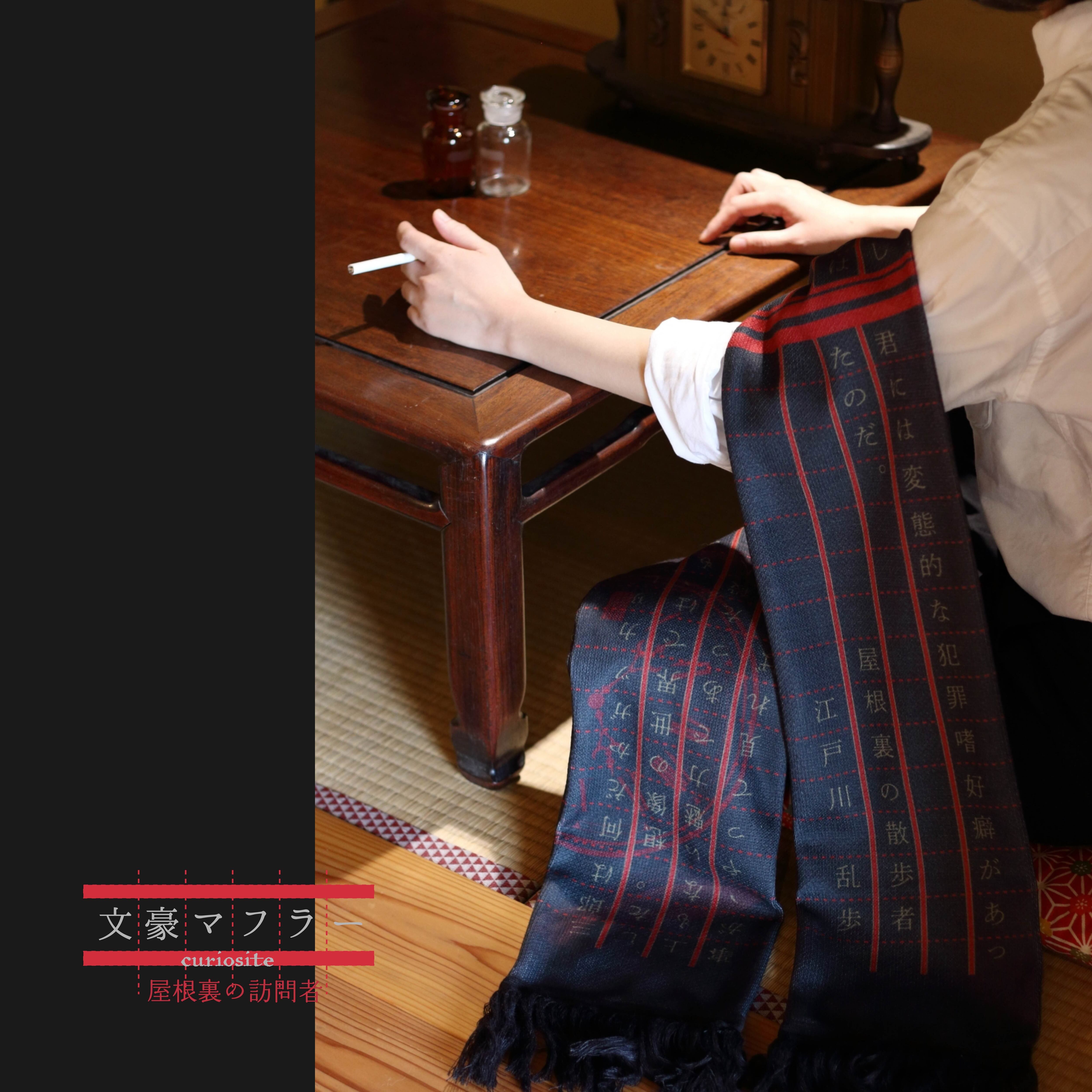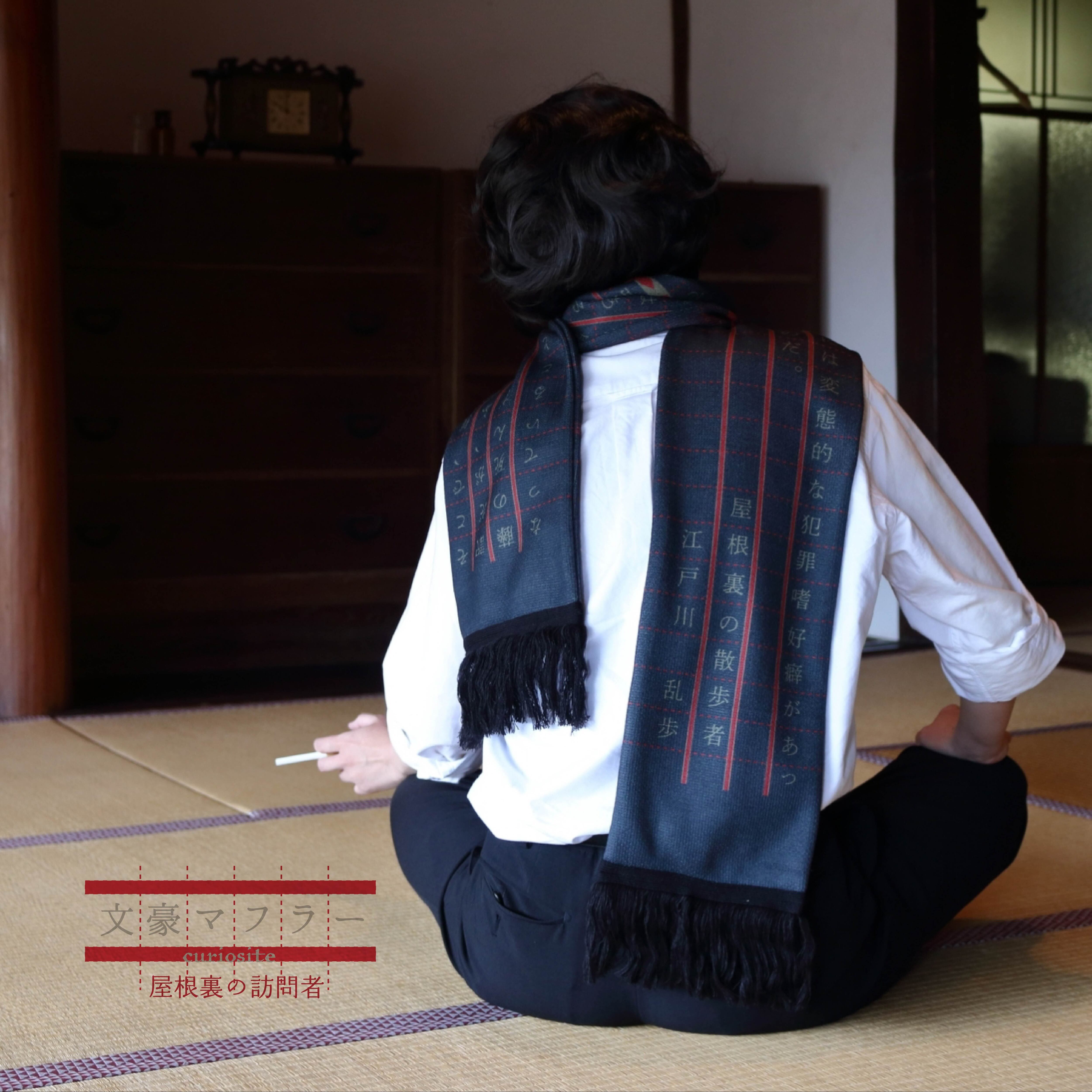 江戸川乱歩の『屋根裏の訪問者』をテーマにしたマフラーです。