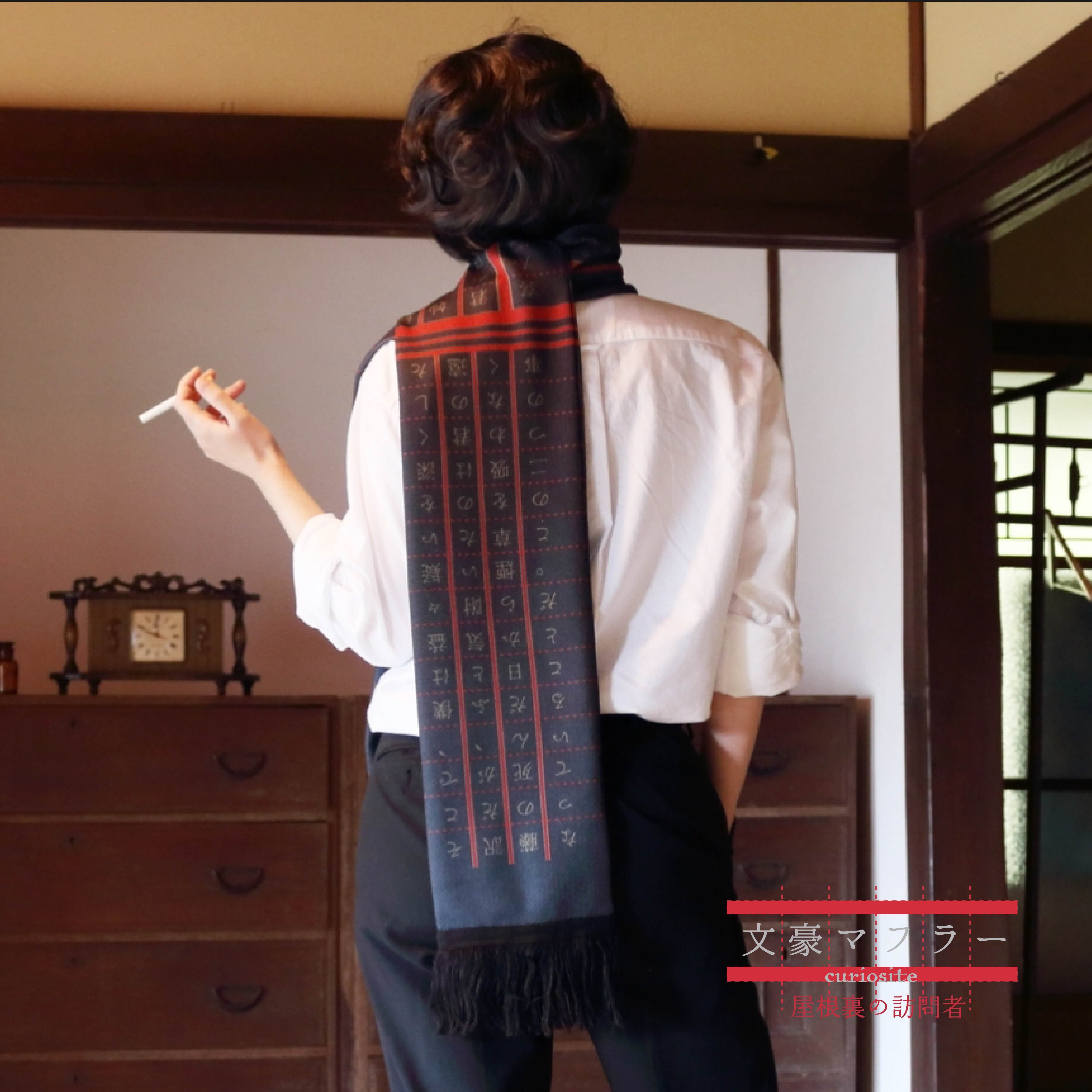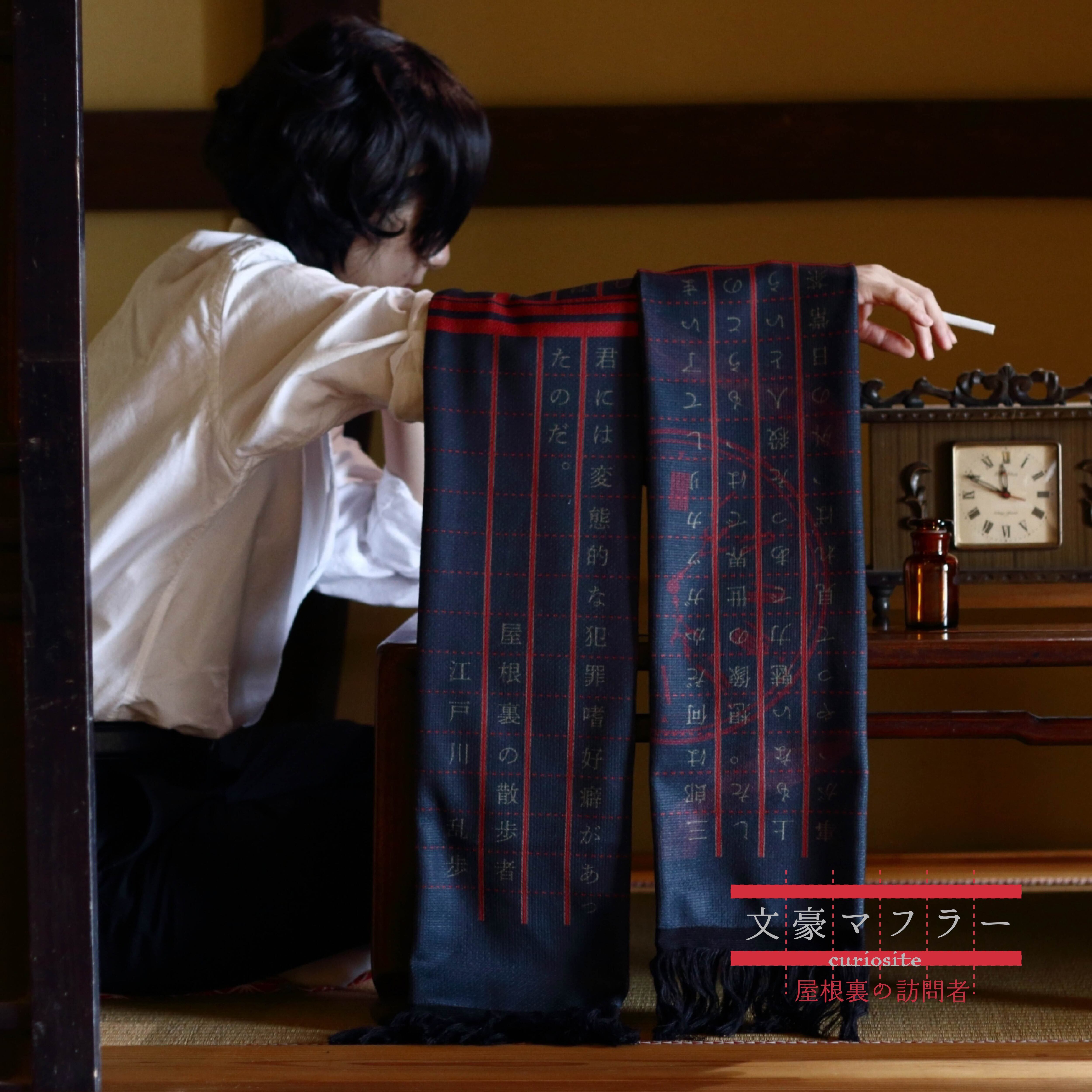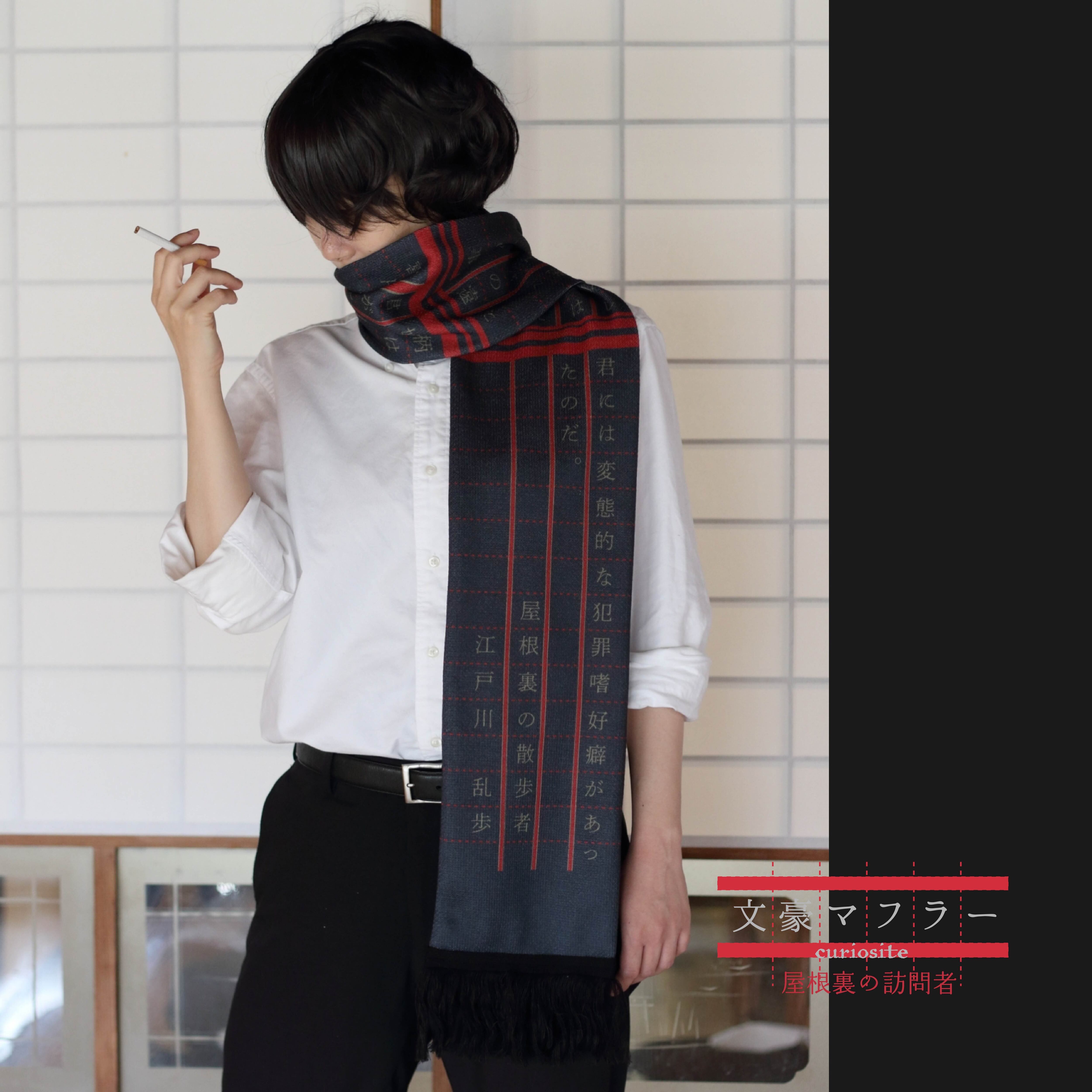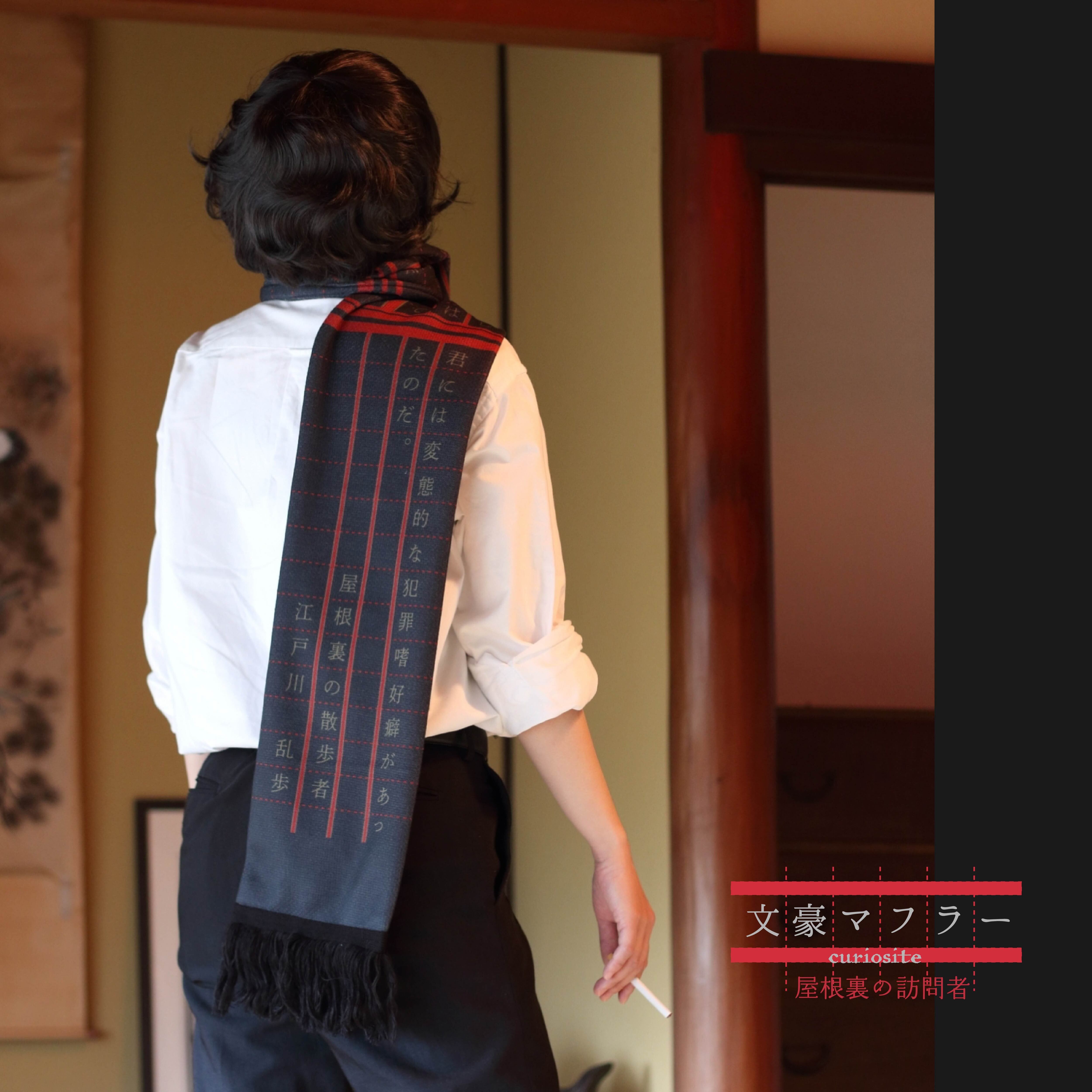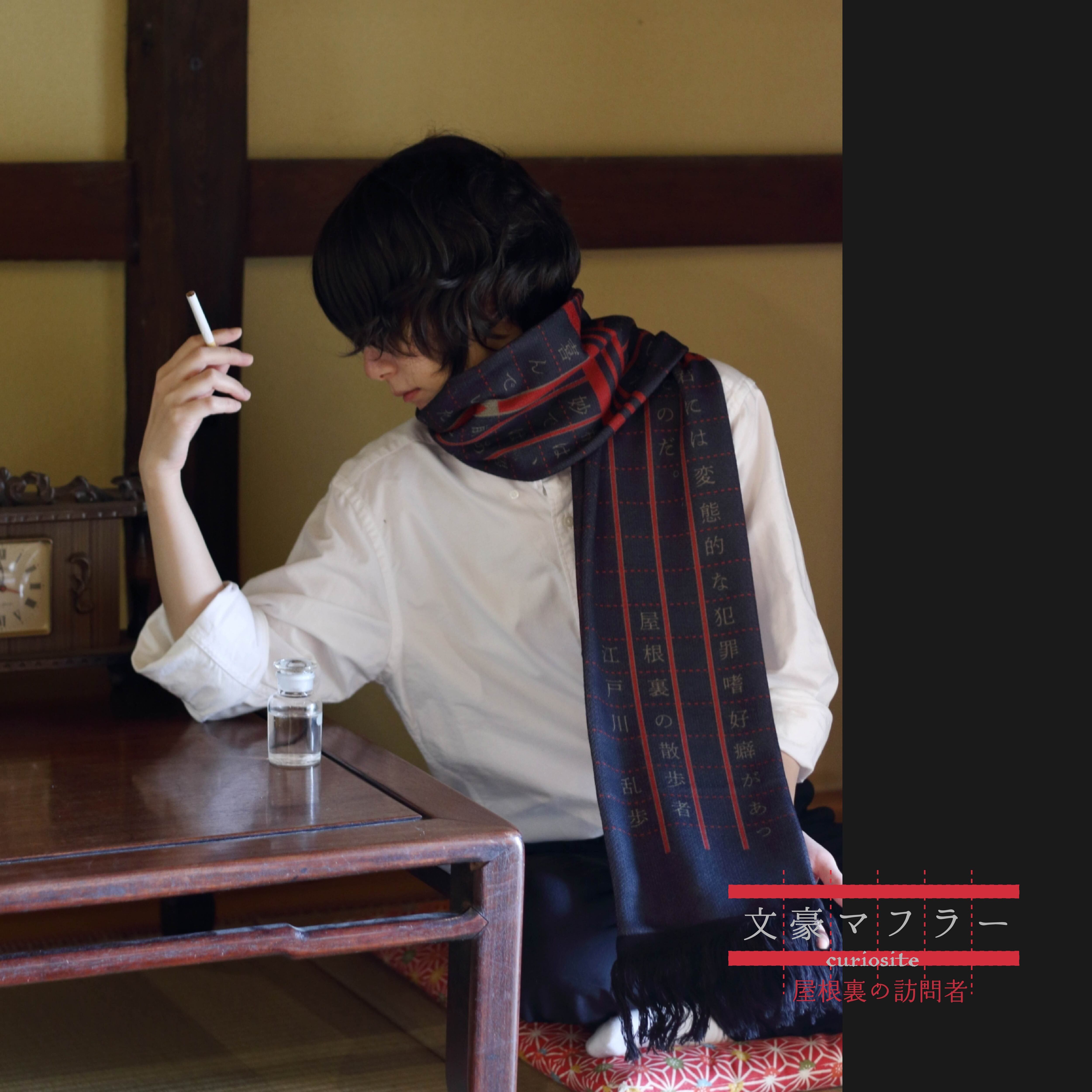 江戸川乱歩の『屋根裏の訪問者』をテーマにしたマフラーです。
